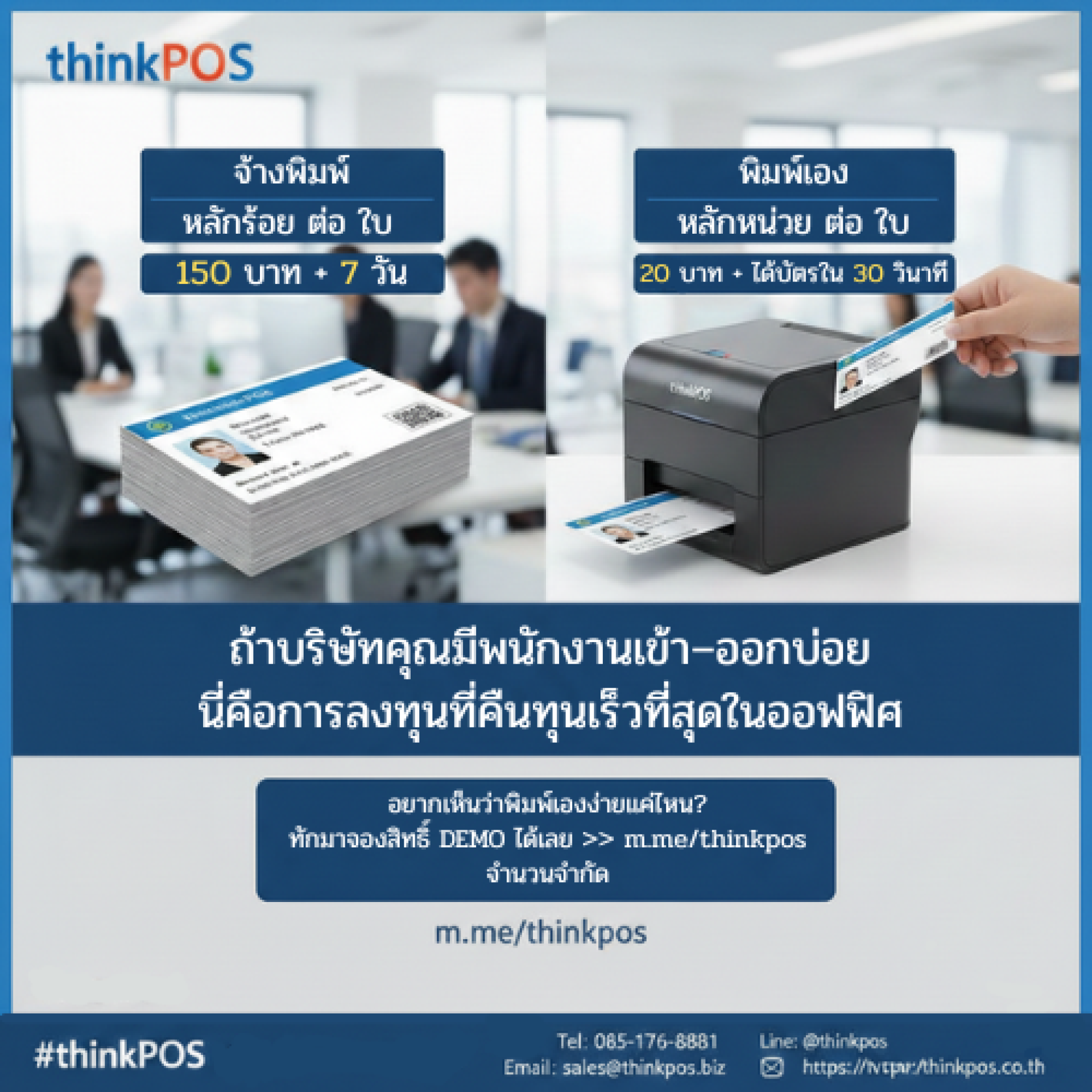 - การคืนทุนที่รวดเร็ว (ROI): สำหรับบริษัทที่มีพนักงานเข้า-ออกบ่อย (Turnover Rate สูง) หรือมีสาขาจำนวนมาก เครื่องพิมพ์บัตรคือการลงทุนที่สามารถคืนทุนได้ภายในไม่กี่เดือน และช่วยให้การบริหารจัดการ "ภาพลักษณ์" ของบริษัทเป็นไปอย่างมืออาชีพ